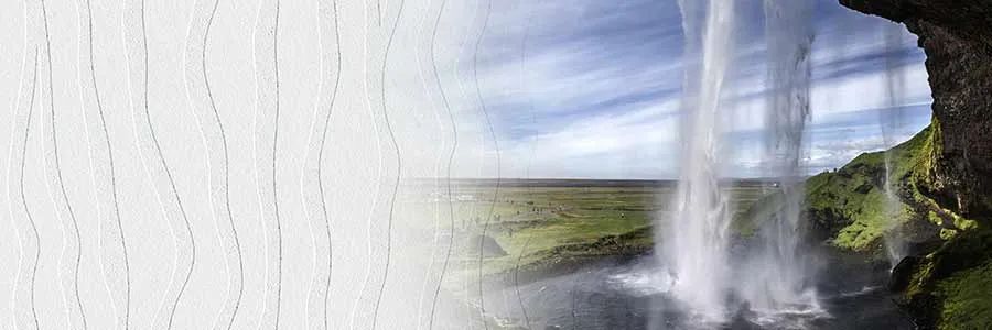 waterfall EP08這款石英壁布,以噴砂打印技術(shù)為特色,瀑布狀的紋理造型,可以打造出具有特殊的光澤感的墻面。搭配冷色系的色彩,仿佛置身瀑布之下,在家里即可開啟一場(chǎng)清涼的激流探索。