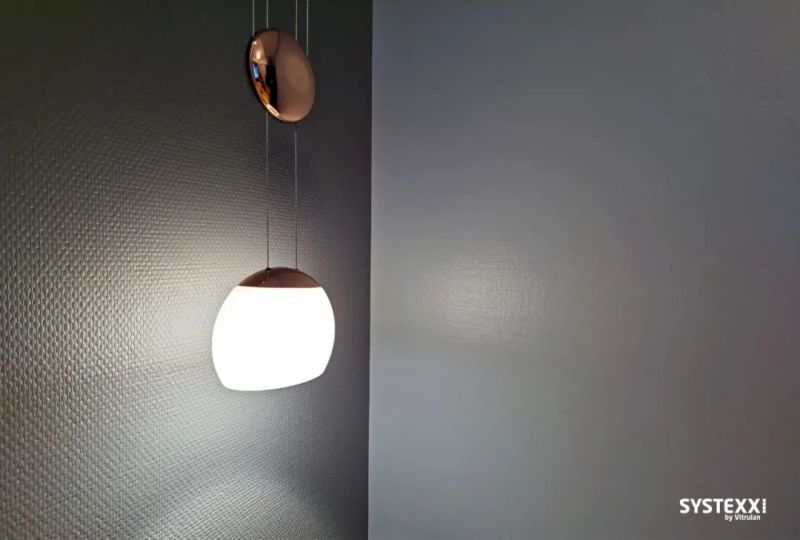 無論是局部的點(diǎn)綴,還是整體的分割,抑或是對(duì)比的手法,白色都能更好地做好背景,烘托氛圍。而且,維圖藍(lán)石英壁布,特殊的紋理線條,使得不同顏色區(qū)域,看起來更像是一個(gè)整體,不突兀!