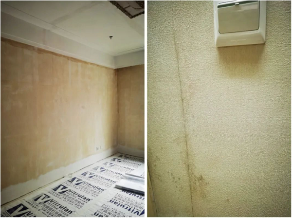 (翻修前墻面圖:縫隙、發(fā)霉、污漬問題)