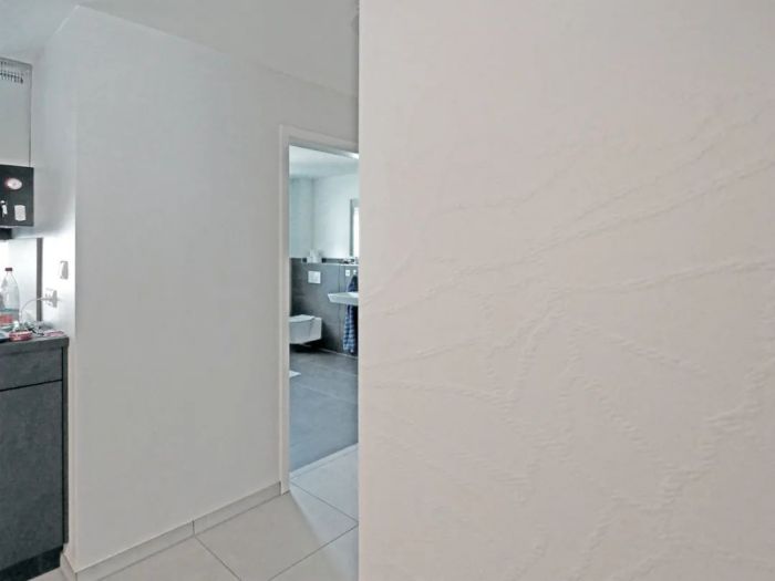 新建的住宅區(qū)由兩棟房屋組成,每棟房屋有九套公寓。我們的客戶(hù)購(gòu)買(mǎi)了一套位于一樓的寬敞一居室公寓,他之所以決定使用維圖藍(lán)石英壁布,一是確保墻面隨著時(shí)間的推移免受開(kāi)裂和磨損的困擾,二是可以實(shí)現(xiàn)其個(gè)人設(shè)計(jì)偏好。