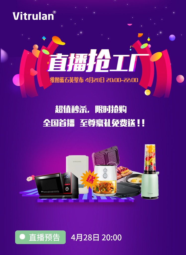 4月28日晚上,「直播搶工廠」德國維圖藍(lán)全國首播線上直播活動圓滿舉行,本次活動由德國維圖藍(lán)大中華區(qū)總代(不含北京)— 湖南兆瑞環(huán)保新材料有限公司全程策劃并落地執(zhí)行,超大力度的優(yōu)惠政策,超豐富的爆款尖貨,圈粉無數(shù),掀起一波又一波的搶購熱潮。